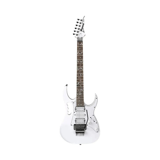 Steve Vai's signature guitars have become almost as iconic as the player himself, and now that mojo is more attainable than ever with the Ibanez JEMJR Steve Vai Signature solidbody electric guitar. From the acrylic vine inlay to the instantly-recognizable "monkey grip" handle, there's no doubt where the JEMJR Steve Vai Signature came from. For tonal tenacity, you get two Quantum humbuckers and one Quantum single-coil pickup complete with five-way switching. Factor in the double-locking tremolo bridge, and the Ibanez JEMJR Steve Vai Signature is ready to wail.