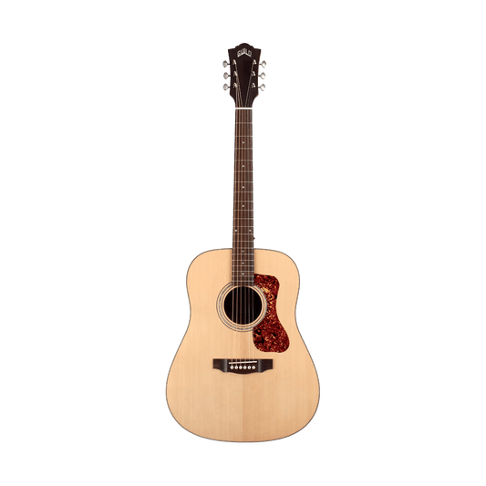 Built with a solid spruce top, mahogany sides, and arched mahogany back, the full-bodied and powerful tone of this Guild dreadnought provides guitarists with a classic acoustic sound and balanced voicing. Guild’s signature arched back design allows for great volume and projection, long sustain, and a lush, full sound. The D-240E features Guild’s Fishman-designed GT-1 Pickup System, a Pau Ferro fingerboard and bridge, bone nut and saddle, mother-of-pearl rosette, period-correct tortoiseshell pickguard, and a matte polyurethane finish. Available in Natural.
