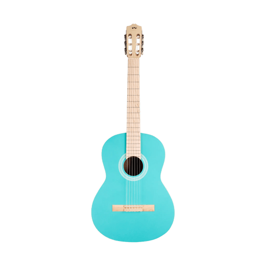 Bring your music to life in full color with the Protégé C1 Matiz! A fresh take on the traditional aesthetic of the nylon-string guitar, the Matiz series combines maple accents and traditional tone woods in 4 eye-catching colors: Aqua, Coral, Pale Sky, and Classic Blue. Spruce top and mahogany back and sides provide the projection and warmth associated with a nylon string guitar, while the maple headplate, bridge, and full-scale fretboard give the C1 Matiz an all new look with a lively tonal response. A satin polyurethane finish provides a layer of protection against nicks and scratches, while the ghost rosette, designed after our traditional wood rosette, allows the eye-catching colored tops of the C1 Matiz to shine through and take center stage. Includes a color-matched gig bag made of recycled nylon so you can rest easy knowing your instrument is protected in responsible and sustainable fashion.