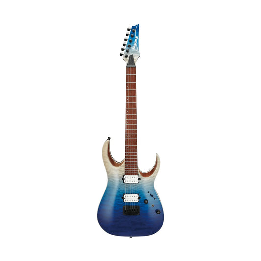 Featuring a fast maple Wizard III neck and jatoba fingerboard with a 15.7-inch radius, the Ibanez High Performance RGA42HPQM Electric Guitar is purposely built for high-speed, low-drag playing. It all starts with a balanced RG nyatoh body and quilted maple top for plenty of richness and snap, accented with eye-catching gold hardware. You'll love how this guitar sounds as soon as you plug it in — its two hot DiMarzio Fusion Edge humbucking pickups and coil tap switch make it ideal for metal, rock, and blues.
